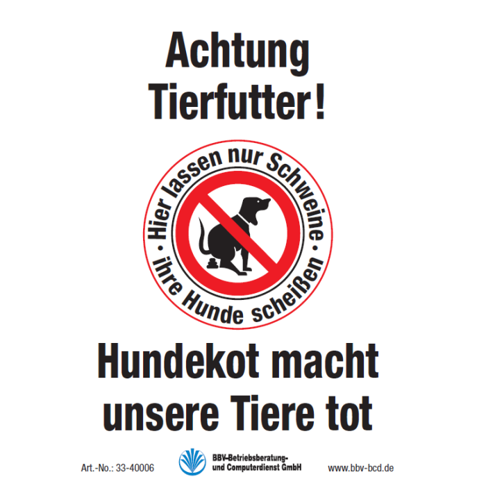 Beschreibung / Warn- und Hinweisschild "Achtung Tierfutter" DIN A4